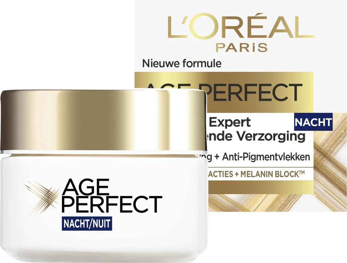 L’Oral Age Perfect NachtcrmeDe anti-rimpel nachtcrme die helpt de huid haar eigen substantie terug te vinden en pigmentvlekken te verminderen. Voor vrouwen boven de 50 jaar.
