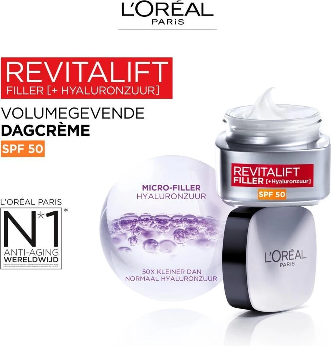 L’Oréal Paris Revitalift Filler Anti-Aging Dagcrème SPF50 – 50ml – Gezichtsverzorging met hyaluronzuur