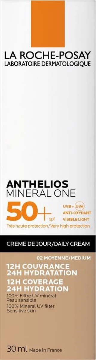 Drie-in-één-werking: hydratatie, egale, natuurlijke dekking plus een hoge UVA- en UVB-breedspectrum zonnebrand met slechts één 100% mineraal filter (Titanium Dioxide) die aangenaam aanbrengt op de gevoelige huid.