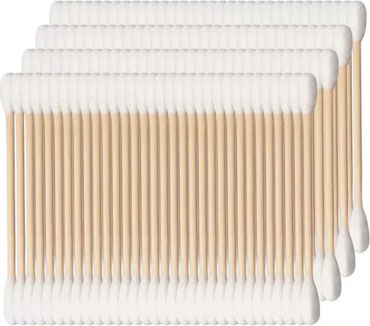 In deze voordeelverpakking zitten 4 pakjes met 100 houten wattenstaafjes.
