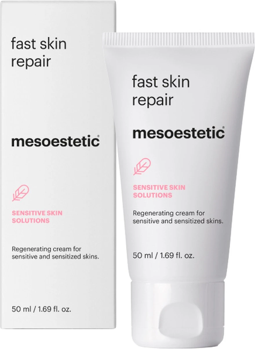 Mesoestetic fast skin repair. Post-Procedure Fast Skin Repair is een herstellende crème met anti-oedemateuze en anti-erythemateuze werking die de huid ultiem herstelt. De crème is geschikt als verzorging na een behandeling: het product maakt de huid strakker, verbetert de elasticiteit en stimuleert celvernieuwing. Ook de ideale herstelcrème om weefsel te genezen dat beschadigd is door blootstelling aan de zo.