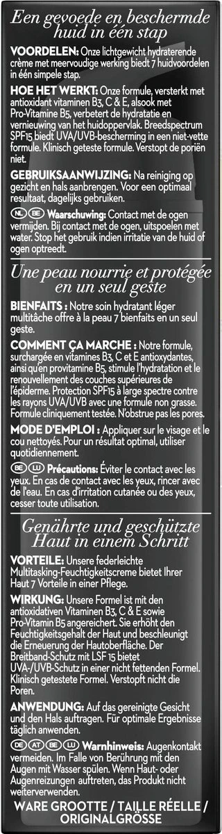 - 7in1 dagcrème met SPF15 en Niacinamide biedt 7 huidvoordelen in één eenvoudige stap