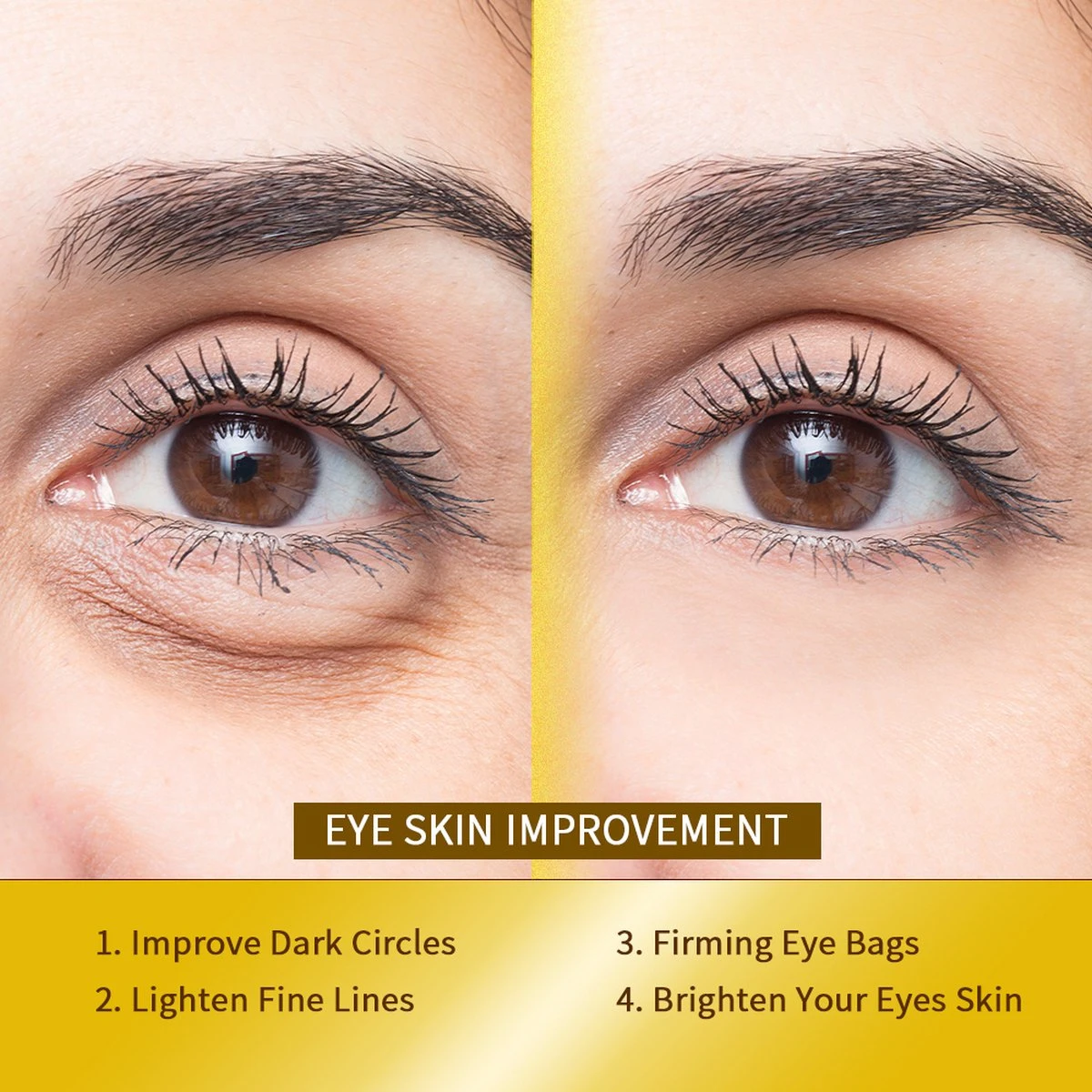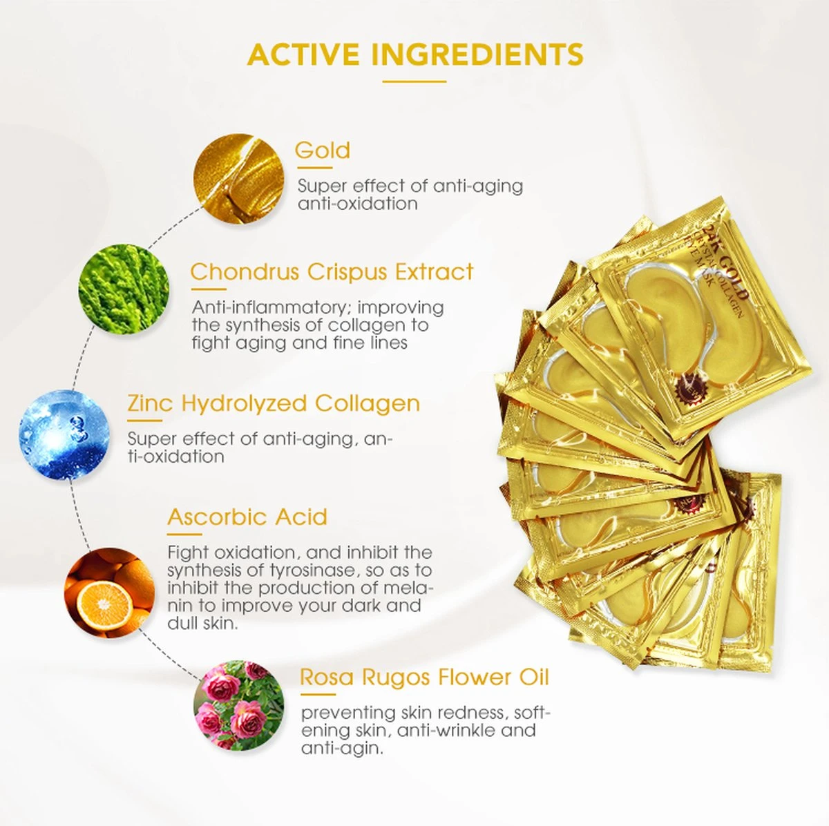 Met behulp van dit oogmasker met collageen zorg je ervoor dat rimpels, donkere cirkels en wallen onder de ogen worden verminderd. Het actieve 24k goud heeft het vermogen om schadelijke gifstoffen te verdrijven, de huid te hydrateren, bloedcirculatie te laten toenemen en het cellulaire metabolisme te verbeteren. Daarbij zorgt het oogmasker dat de huid weer zacht en soepel wordt. Het product bevat 24 stuks (12 Paar).