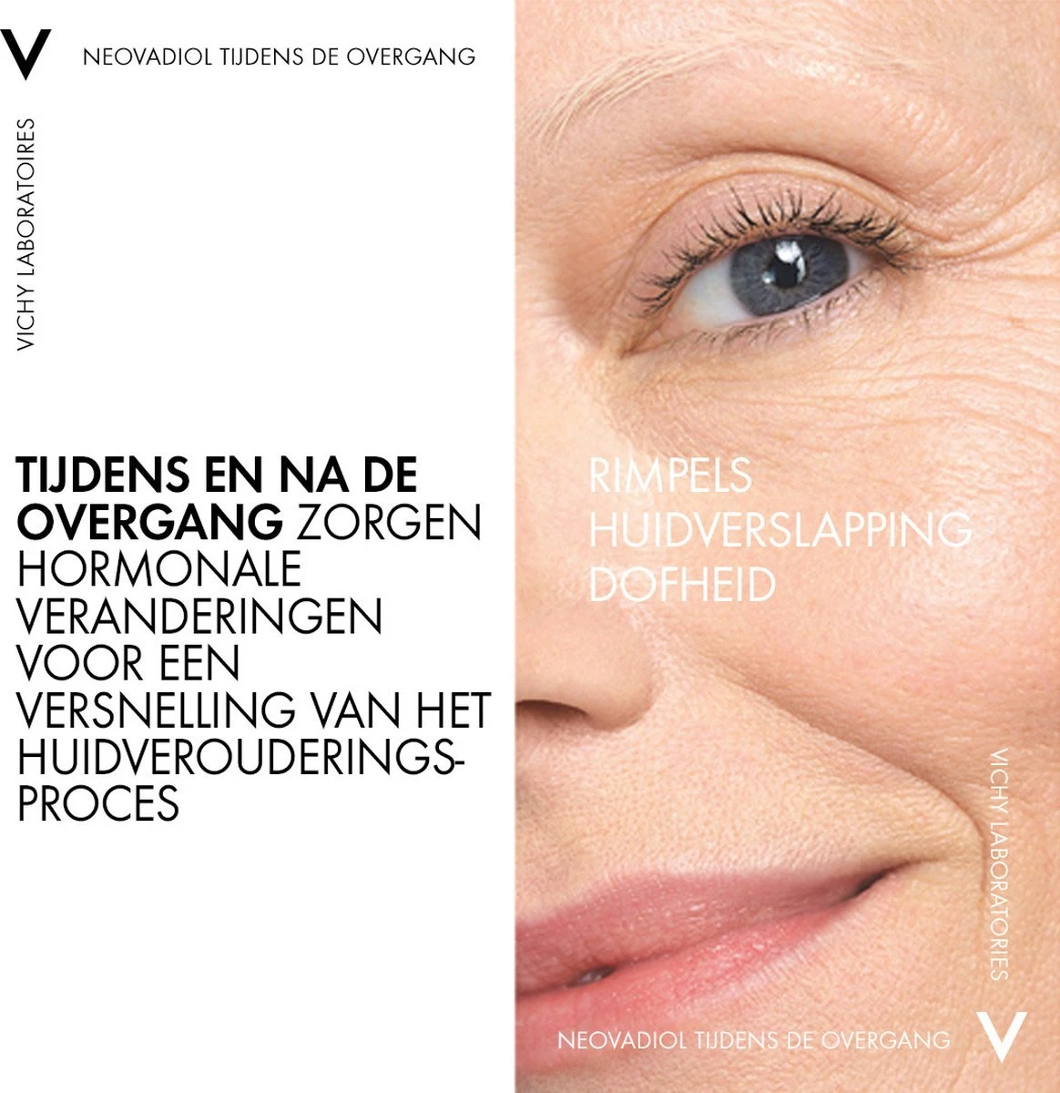 Op basis van nieuw inzicht over de invloed van hormonale veranderingen op de huid tijdens en na de overgang, zijn de crèmes van Neovadiol vernieuwd met een verbeterde formule voor een optimale effectiviteit tegen zichtbare tekenen van de overgang, maar met de vertrouwde textuur en geur!