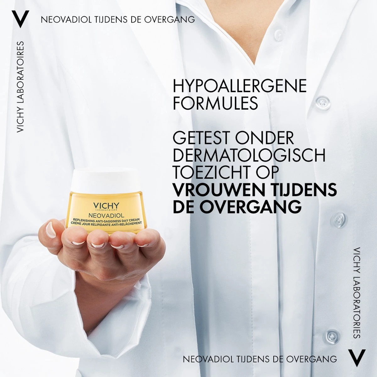 Al sinds 1931 staat Vichy aan de voorgrond van wetenschappelijk onderzoek naar de huid. Zo hebben we op basis van meer dan 80 jaar onderzoek Neovadiol ontwikkeld, speciaal voor vrouwen tijdens en na de overgang. Deze Verstevigende, Revitaliserende Nachtcrème is verrijkt met Vichy Vulkanisch Water. Dit water, uit een beschermde vulkanische regio, telt maar liefst 15 krachtige mineralen.