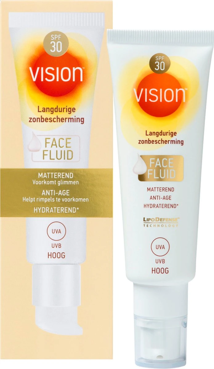 Vision Face Fluid SPF 30 Langdurige zonbescherming voor je gezicht. Anti-age, matterend en hydraterend*. *met hydraterende bestanddelen