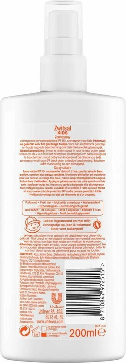 - Zwitsal zonnespray trekt snel in, is makkelijk smeerbaar en plakt niet